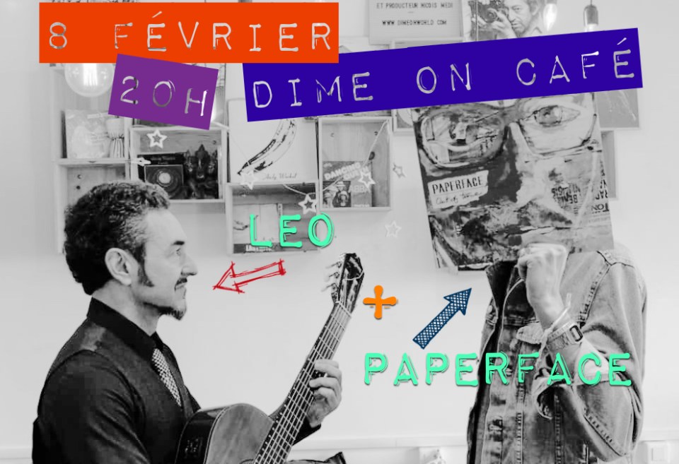Leo en première partie de Paperface au Dime On Café, accompagné de David Giacobetti (basse)